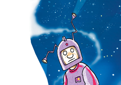 Hier ist alles komisch! Die Menschen laufen ohne Raumanzug durch die Gegend, sie essen statt Pillen alle möglichen Dinge, und sie nehmen sich sogar in den Arm! Ohne Paula, die ihm die Erde erklärt, wäre der kleine Astronaut völlig verloren. Aber Paula hilft ihm, und sie zeigt ihm den schönsten Ort der Welt: das Meer!